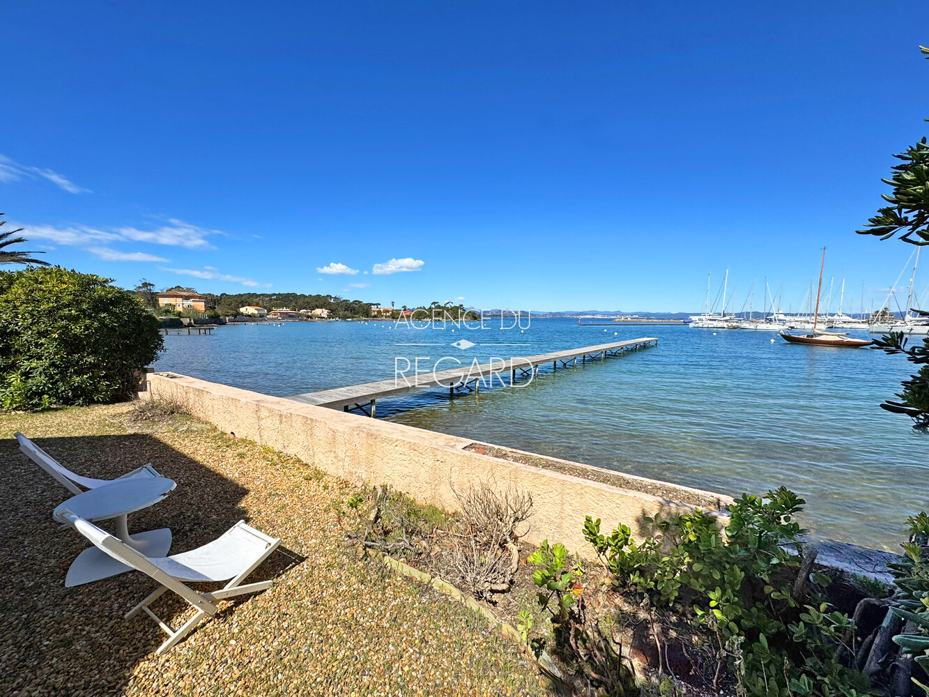 Exceptional! In Porquerolles, right on the water with its pontoon, this 87sqm apartment offers a magnificent view of the sea and the port. It is extended by a private garden of 96sqm, not overlooked, with 12 meters of sea frontage which gives direct access to the pontoon. Calm is required since it is away from the noise and tourist movements. Its access is on one level, via a beautifully flowered courtyard where bicycles can be parked and via a loggia converted into a common entrance hall. It has 3 bedrooms, 2 bathrooms with toilets, a kitchen and a living room which will require renovation work. DPE: E – GES: E