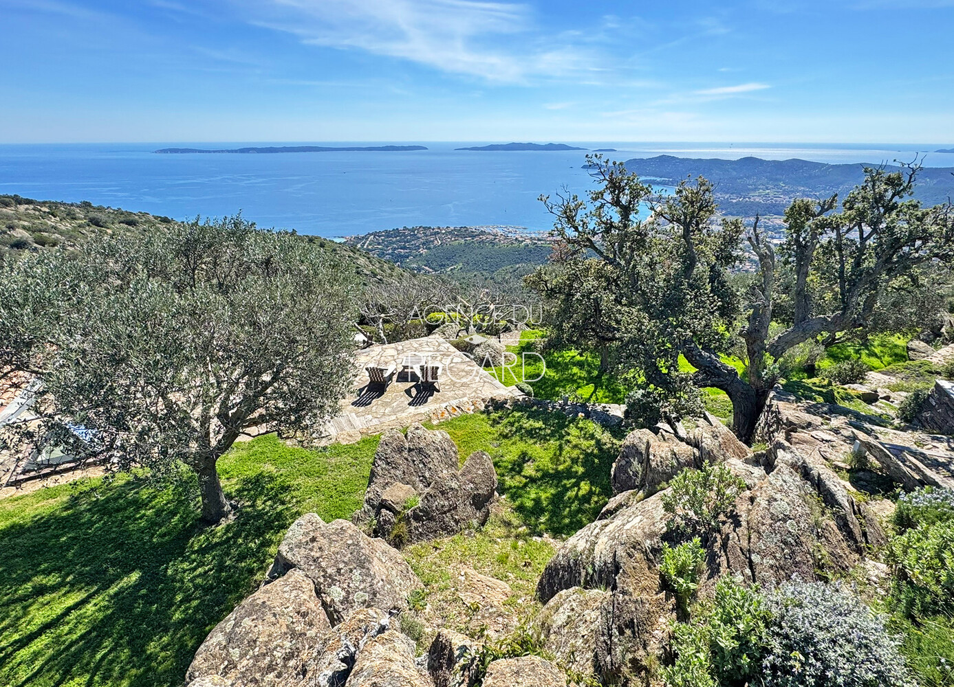 Exclusivity ! Located on the Route des Crêtes between Bormes-les-Mimosas and Le Lavandou, this exceptional 11-hectare property, nestled in the countryside, boasts breathtaking panoramic sea views. The sea view stretches from the Giens peninsula to Rayol-Canadel, taking in the Îles d'Or along the way. A villa, a guest house, and a cabin, all fully renovated, offer 300sqm of living space and a total of 7 bedrooms. A pool area also enjoys this incredible sea view.