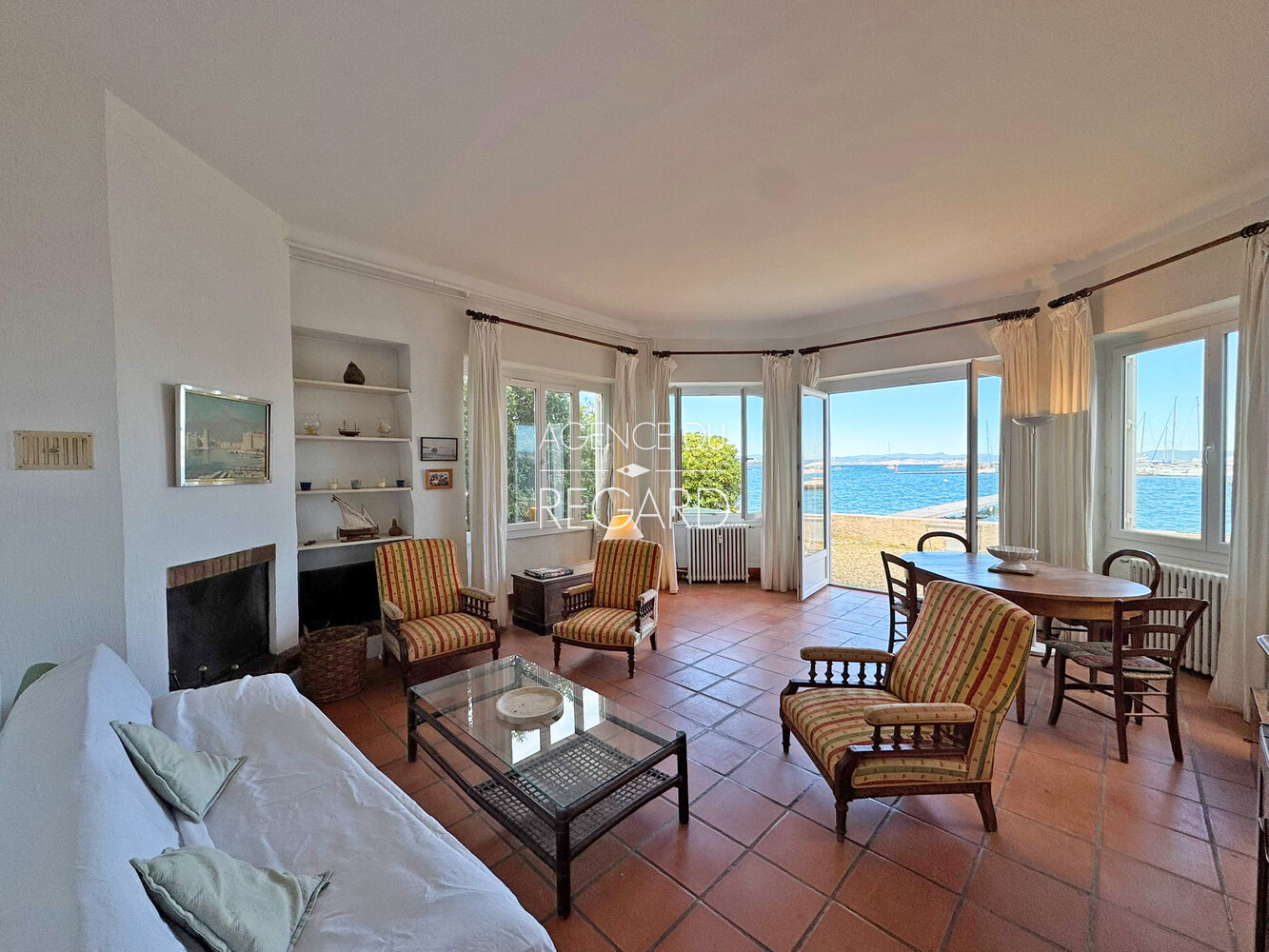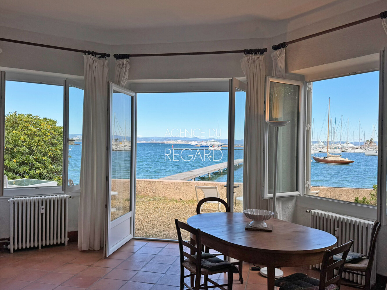 Exceptional! In Porquerolles, right on the water with its pontoon, this 87sqm apartment offers a magnificent view of the sea and the port. It is extended by a private garden of 96sqm, not overlooked, with 12 meters of sea frontage which gives direct access to the pontoon. Calm is required since it is away from the noise and tourist movements. Its access is on one level, via a beautifully flowered courtyard where bicycles can be parked and via a loggia converted into a common entrance hall. It has 3 bedrooms, 2 bathrooms with toilets, a kitchen and a living room which will require renovation work. DPE: E – GES: E
