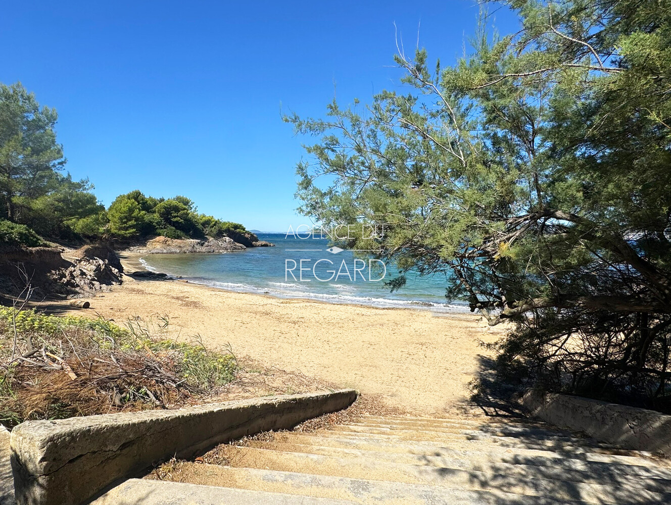 This 1,058sqm property is located in Giens at La Madrague, by the sea and on the edge of the forest. The beach is only 2 minutes by walk via private access. The garden is fully fenced, private, and perfectly landscaped. A pool house with its summer kitchen benefits from the peaceful surroundings. This atypique villa was completely renovated in 2016/17 with quality materials. It enjoys a sea view across Almanarre Bay to Carqueiranne. 3 en-suite bedrooms (possibility of 4). swimming pool 11.50x4.65m