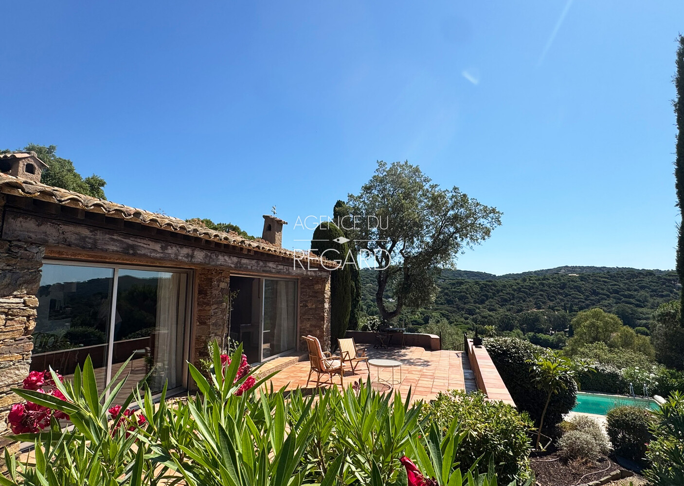 This 1,730sqm property is located in the heart of a quiet residential area, just 12 mns walk from Gigaro beach, in La Croix-Valmer. A beautiful sea view extends across Gigaro Bay to Cap Lardier. The terraced garden is perfectly landscaped and planted with Mediterranean plants. The pool area, not overlooked, benefits from the surrounding tranquility. This provençal villa of 150sqm offers a total of 6 bedrooms and extends onto a south-facing terrace with a beautiful sea view. Swimming pool 7.5x3m. Chalet. Storage room. DPE:D ; GES :B .