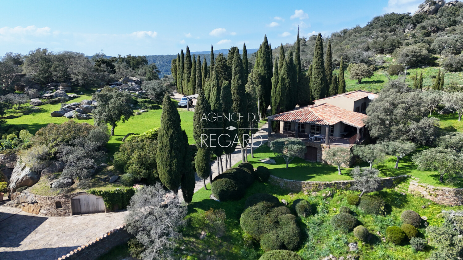 Exclusivity ! Located on the Route des Crêtes between Bormes-les-Mimosas and Le Lavandou, this exceptional 11-hectare property, nestled in the countryside, boasts breathtaking panoramic sea views. The sea view stretches from the Giens peninsula to Rayol-Canadel, taking in the Îles d'Or along the way. A villa, a guest house, and a cabin, all fully renovated, offer 300sqm of living space and a total of 7 bedrooms. A pool area also enjoys this incredible sea view.
