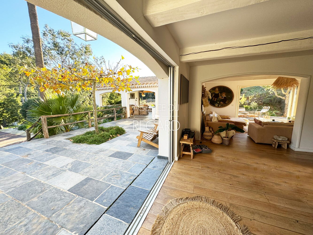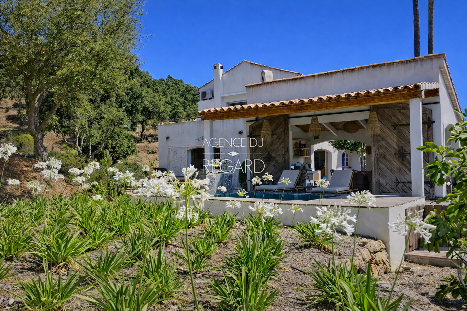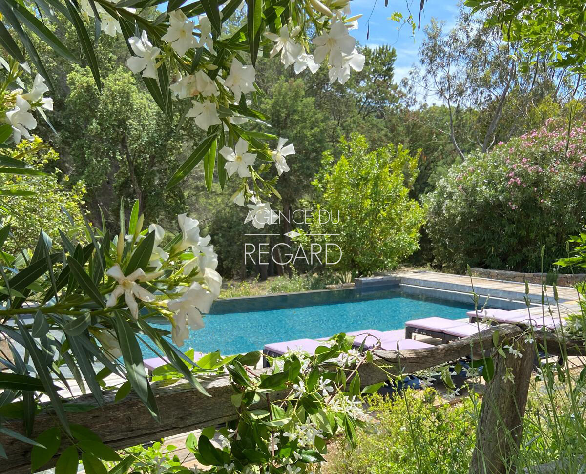 In La Londe-les-Maures, this unique 27,720sqm property enjoys a peaceful, unspoiled rural setting. The garden is beautifully landscaped with dry stone walls, wrought-iron arches, and charming flower-lined pathways. A lovely pool area features a pool house with a summer kitchen, barbecue, and a covered terrace with a jacuzzi. This 190sqm Provençal villa offers a hacienda atmosphere with charming décor. It also includes a 50 sqm guest house. Four bedrooms and fitness room. Swimming pool 5x11m. 2 garages.
