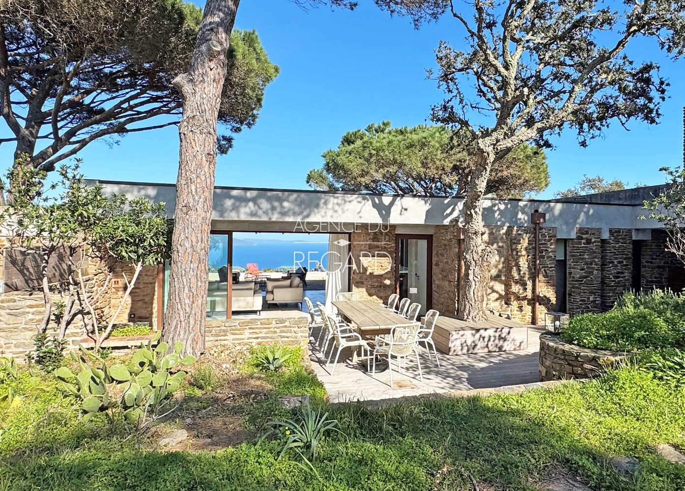 Exclusivity ! In Bormes-les-Mimosas, within the private and gated Gaou Bénat estate, this 558sqm property boasts exceptional east, south, and west exposure, offering optimal sunshine throughout the day and remarkable sea views. The 136sqm villa has been completely renovated with high-quality materials and combines charm with contemporary comfort. It features 5 bedrooms. 20 minutes walk to the beach. 8.30x3.40m swimming pool. A garden shed and parking. Energy Performance DPE : B – GES : A