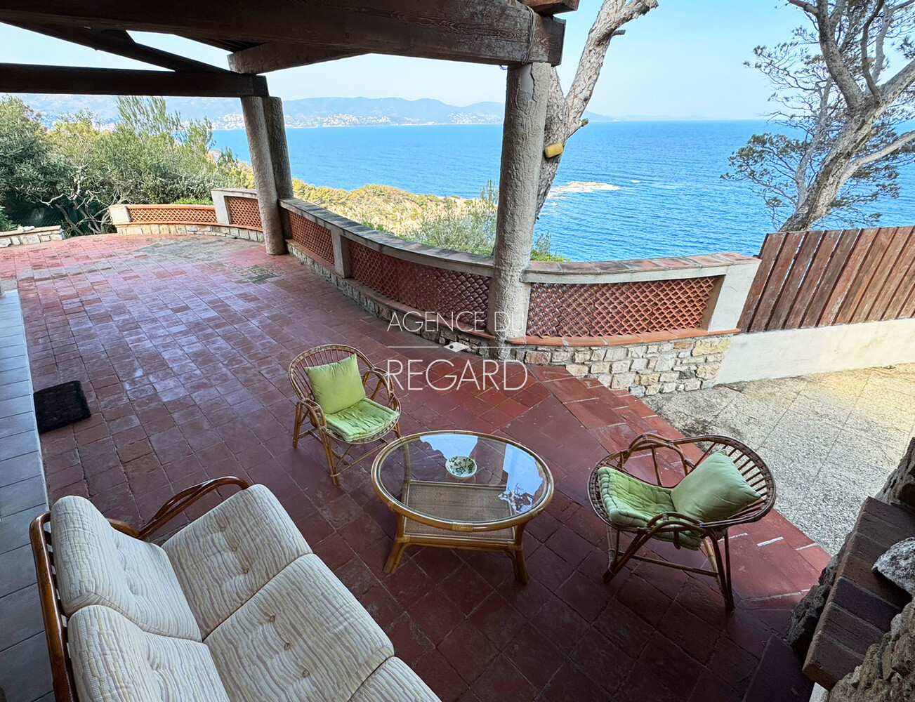 A Bormes-les-Mimosas, dans le prestigieux domaine privé et gardienné du Cap Bénat, cette propriété d’exception de 1 470m² est en premier rang sur la mer et bénéficie d’une vue panoramique spectaculaire, embrassant la Méditerranée du Cap Nègre jusqu’à l’île du Levant. Une vaste terrasse dominant la mer accueille la villa (à rénover entièrement) ainsi que la piscine, invitant à profiter pleinement de ce panorama unique. Un portillon discret permet de rejoindre directement le sentier du littoral, menant à des criques sauvages aux eaux turquoise. Garage.